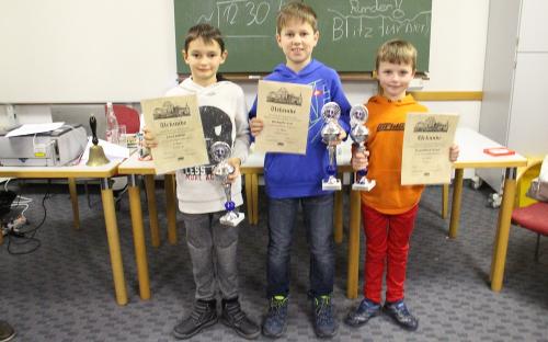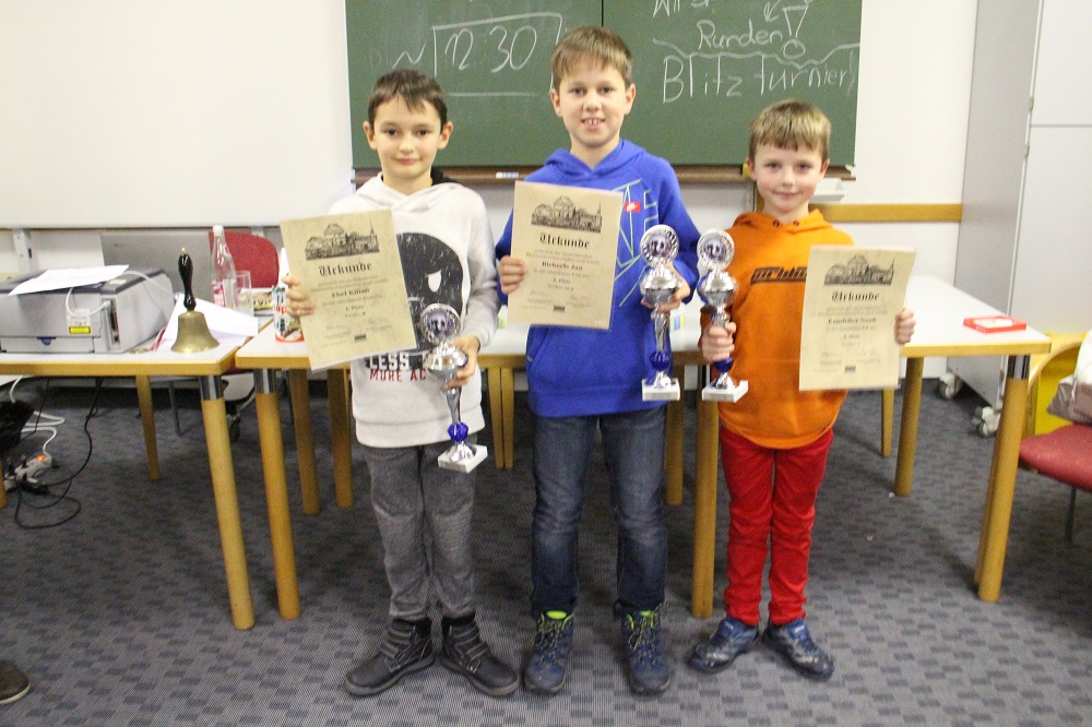 Auch beim abschließenden Blitzturnier gewann Jan Bieberle die U12, Kilian Ebel die U-10 und Noah Kamleiter die U-08.