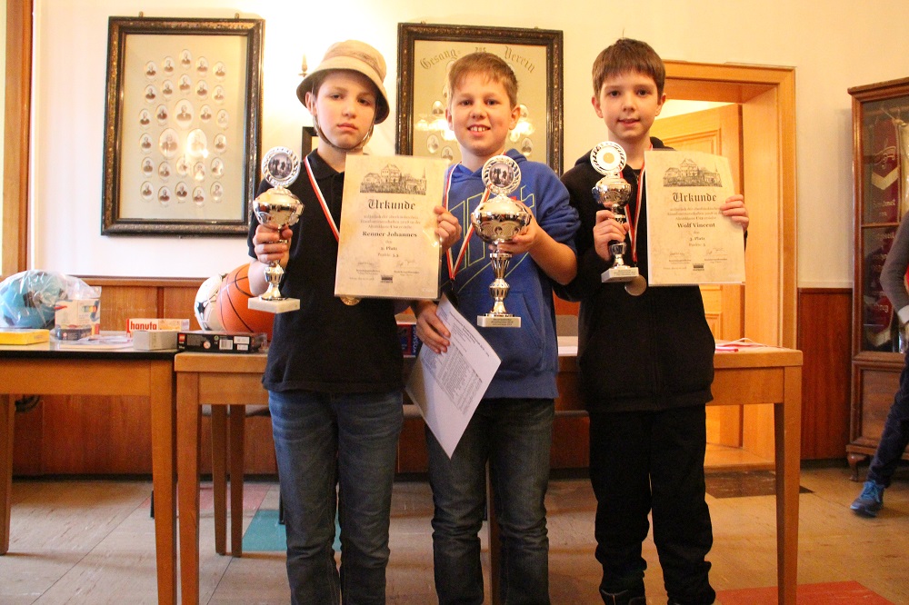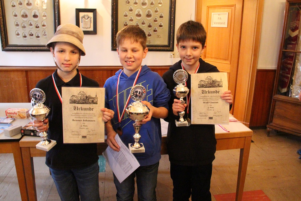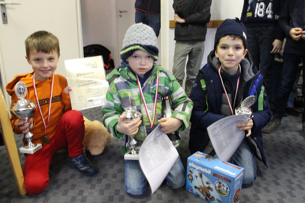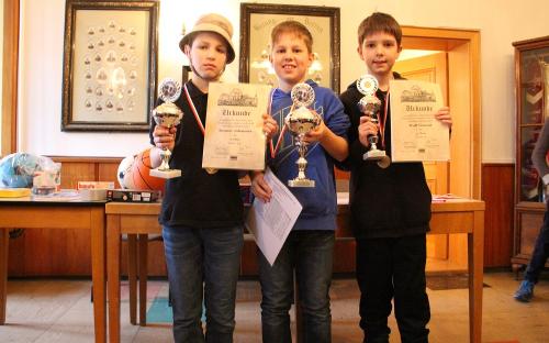 Jan Bieberle (U12), Kilian Ebel (U10) und Noah Kamleiter (U08) jeweils Doppelmeister (Langzeit und Blitz) ihrer Alterklasse