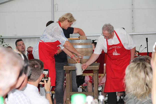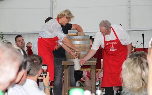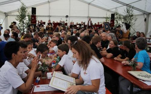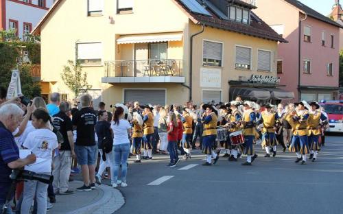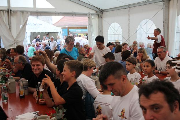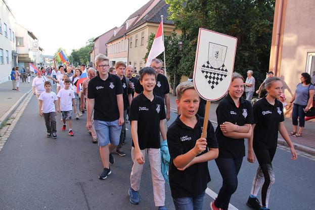 Das 35. Höchstadter Altstadtfest ist am Freitag Abend traditionell mit dem Eröffnungsschießen der Schützengilde und dem Festzug der Vereine gestartet. Für den SC Höchstadt waren diesmal rund 40 Kinder und Erwachsene beim Festzug dabei - eine Rekordzahl dank der Krasnogorsker Schachfreunde. Im Festzelt im Schlosshof überbrachte Viktoria Fedorova freundliche Grußworte aus Krasnogorsk - Sibylle Menzel vom Freundeskreis Höchstadt-Krasnogorsk übersetzte. Bei Currywurst, Bier und Musik war die Stimmung im Festzelt bestens.